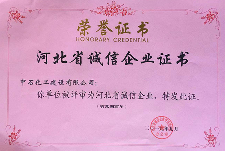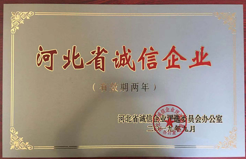 公司榮獲2019年河北省誠信企業(yè)